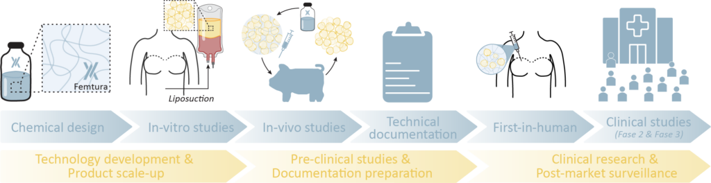 The objective of this project is to develop the innovative product Femtura, which enables large-volume fat grafting for full breast reconstruction following mastectomy. Femtura aims to reduce the number of required treatments and help prevent physical and psychological complaints, thereby creating both societal and economic impact.